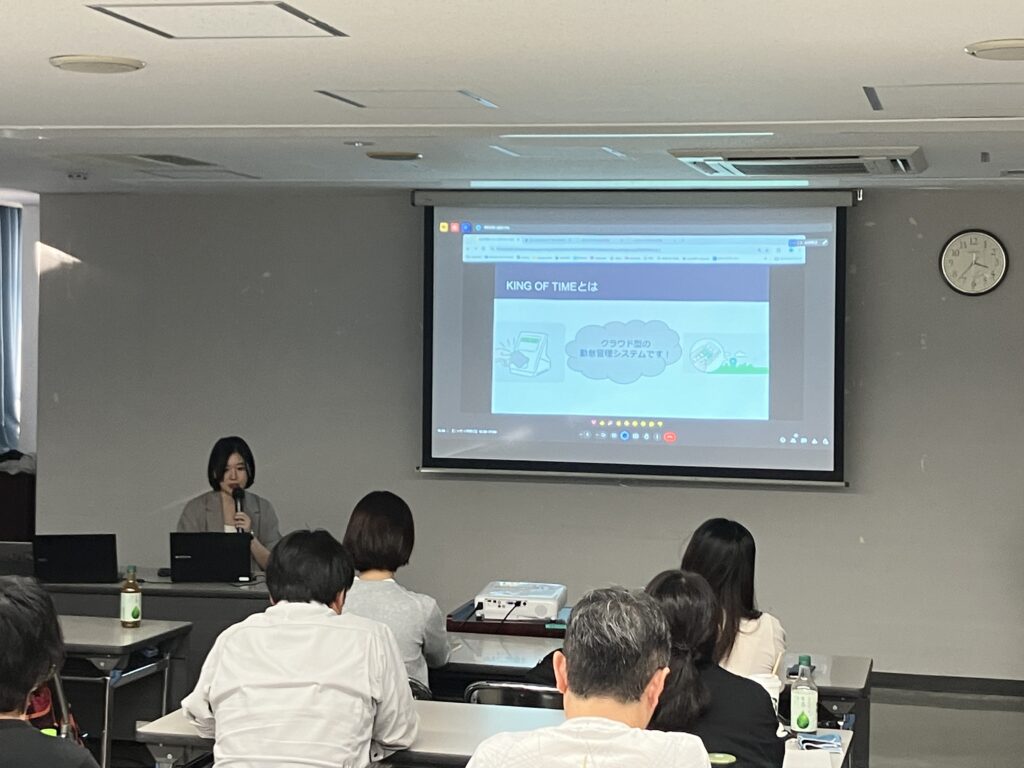 社内外の業務DX化に向けたシステムの説明、建設業の働き方改革に伴う勤怠管理への取組み、また事前に社内アンケートを実施し、会社や組織、働く環境の改善に向けての取組みや施策について代表の杉田より話がありました。